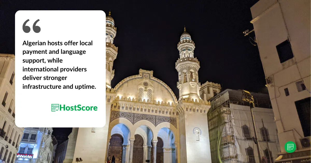 International hosts are usually the only viable option in Algeria — Unless you’re managing a very basic site for a domestic audience, you’ll likely need to host internationally. The key is finding a provider that offers French or Arabic language support, allows alternative payment methods, and operates data centers close to North Africa.