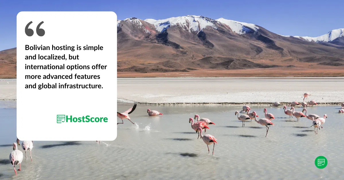 Bolivian businesses that only serve a domestic audience may benefit from local hosts due to easier billing and language support. But for anything beyond a simple blog or small business site, international hosts offer better speed, tools, and uptime.