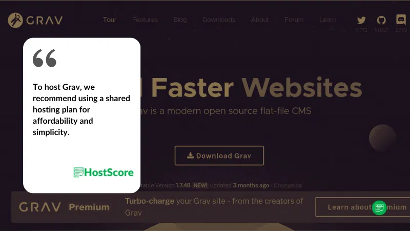 Grav is a modern open-source flat-file content management system (CMS) designed for speed and simplicity without the need for a database. To host Grav, we recommend using a shared hosting plan for affordability and simplicity, or upgrading to a VPS plan if you need more resources and customization for high-traffic sites.