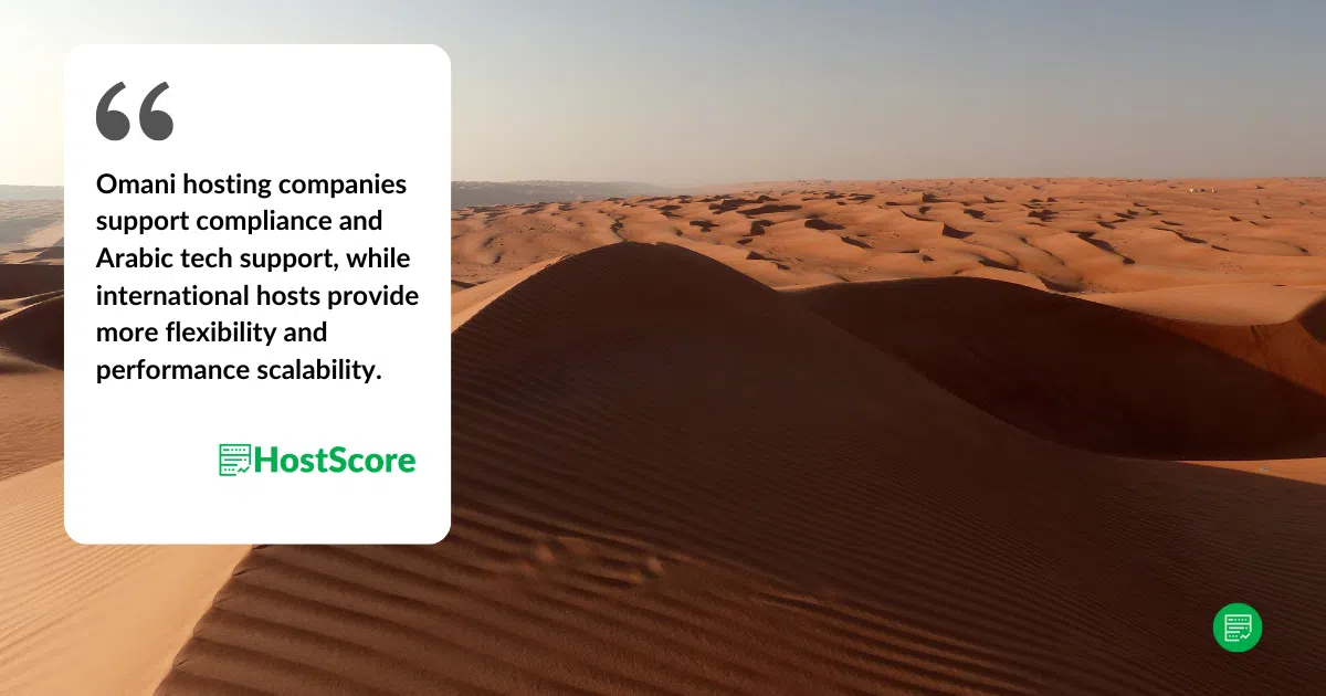 Choosing a hosting provider in Oman depends on your audience, regulatory obligations, and project scope. Local providers are a solid option for government contracts or Arabic-first websites, while international hosts are ideal for growth-focused businesses, developers, or startups building multi-region applications.