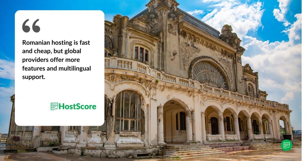 Hosting locally gives Romanian businesses low-latency access for domestic users, excellent network stability, and GDPR-compliant infrastructure. However, international customers may encounter limitations in terms of language support, control panel translations, or compatibility with globally popular tools and platforms. While Romania’s local market is strong on performance, it may be less developer-centric compared to some global providers.
