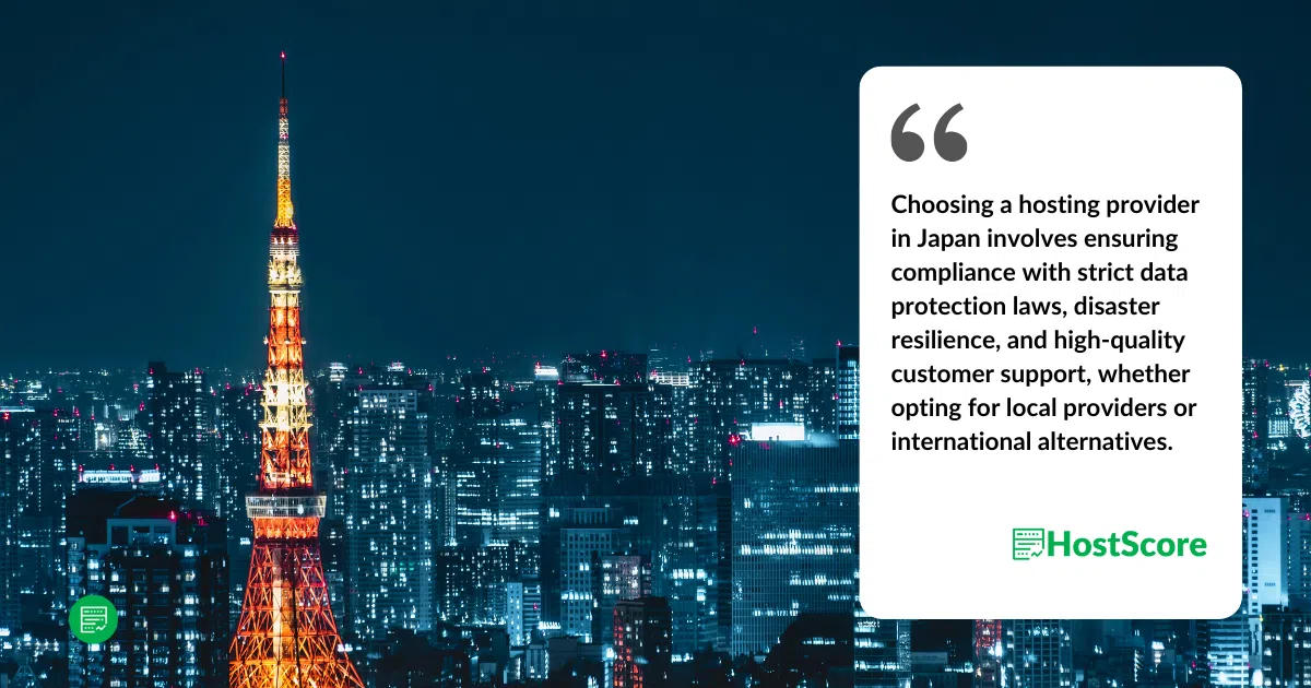 L'une des principales préoccupations des entreprises japonaises est la conformité des données. Les hébergeurs web doivent se conformer à la loi sur la protection des données personnelles (APPI), ainsi qu'à des réglementations supplémentaires pour les sites financiers et gouvernementaux. La résilience aux catastrophes est un autre facteur majeur, car l'activité sismique du Japon exige des centres de données des stratégies de sauvegarde et de récupération bien développées. Enfin, la culture du marché local privilégie un support client de qualité en japonais, ce qui fait défaut à de nombreux fournisseurs internationaux.