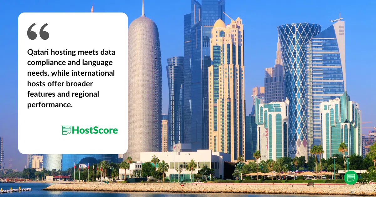 Les hébergeurs locaux et internationaux présentent tous deux des avantages. Les hébergeurs web locaux au Qatar peuvent proposer un service client dans votre langue maternelle, des options de paiement locales et le respect des réglementations locales. Les hébergeurs internationaux, quant à eux, offrent généralement une meilleure infrastructure, une meilleure évolutivité et des tarifs compétitifs. Si la latence et la conformité légale sont des préoccupations majeures, un hébergeur local peut être préférable, mais un hébergeur international avec des serveurs locaux ou CDN L’intégration peut également offrir de solides performances.