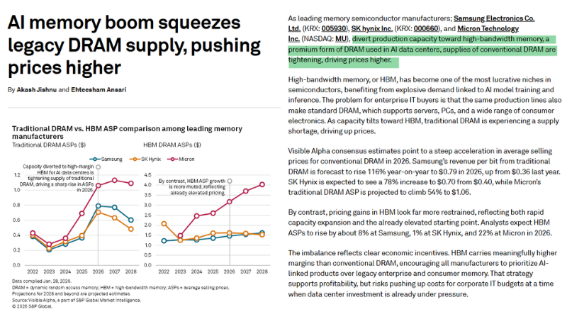 This means capacity is being redirected rather than significantly expanded, reinforcing the current supply imbalance. As demand accelerates and multiple constraints converge, memory is entering a phase of sustained pricing volatility.
