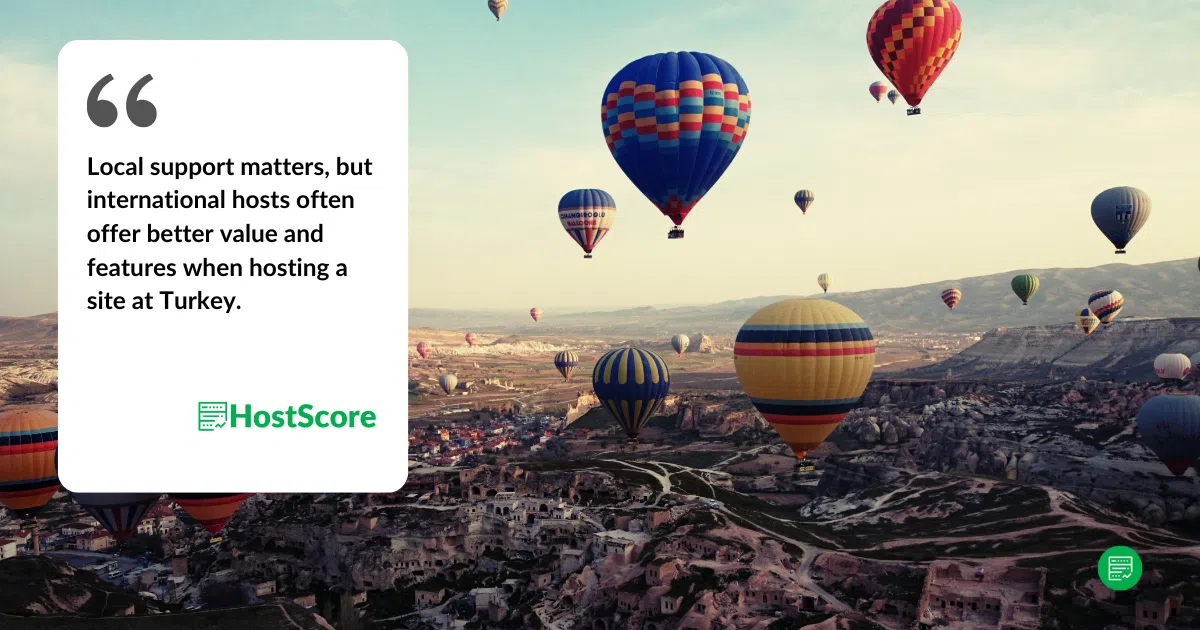 Provedores de hospedagem locais e internacionais têm vantagens. Hospedagens locais na Turquia podem oferecer suporte ao cliente em seu idioma nativo, opções de pagamento locais e conformidade com as regulamentações locais, enquanto provedores internacionais geralmente oferecem melhor infraestrutura, escalabilidade e preços competitivos. Se latência e conformidade legal forem preocupações importantes, um provedor local pode ser preferível, mas um provedor global com servidores locais ou CDN a integração também pode proporcionar um desempenho forte.