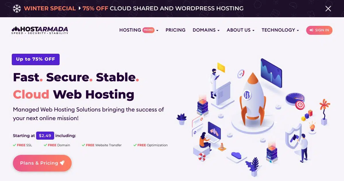 HostArmada is an excellent choice for small businesses, offering competitively priced hosting plans that deliver reliable performance without straining tight budgets. This makes it a great option for startups and growing businesses. Key features like free SSL certificates, daily remote backups, and a pre-optimized server environment ensure that even non-technical users can maintain a secure and high-performing website.