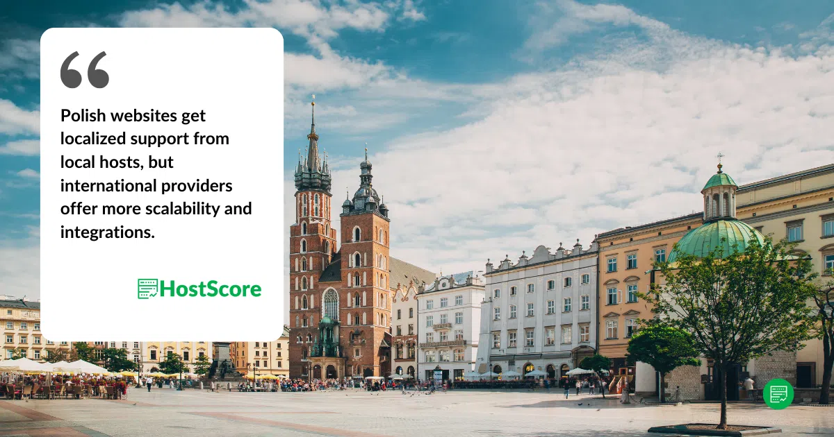 - 語言和使用者介面: 本地主機提供完整的波蘭語介面和支援;國際供應商可能只提供英語或其他主要語言選項。
